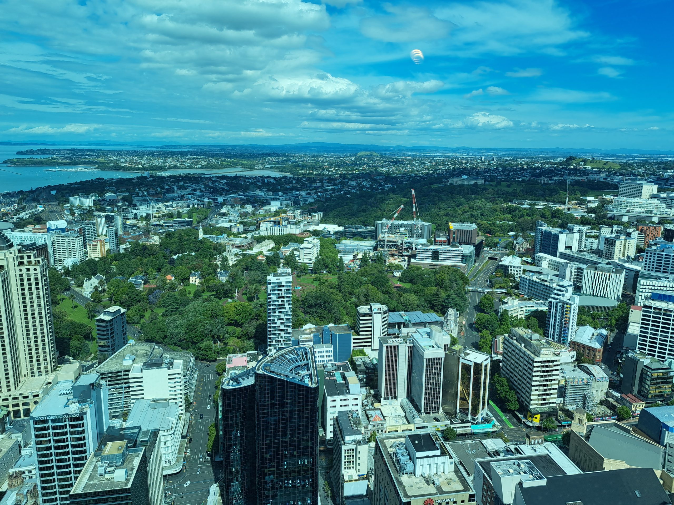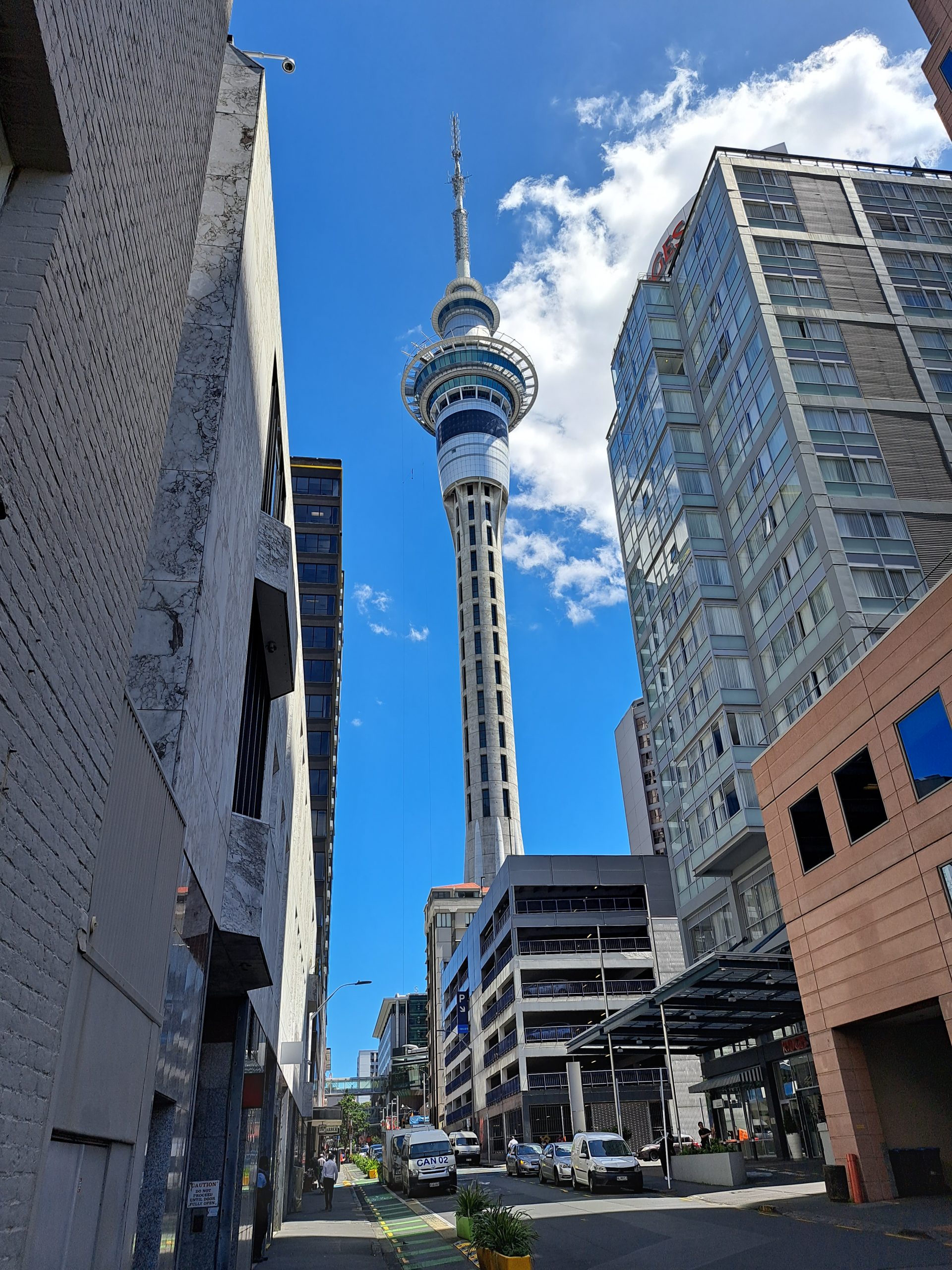 Je näher ich Auckland komme, desto voller sind die Strände. Mit großem Gepäck wandere ich zwischen Sonnenanbetern (und -innen 😉 ) hindurch bis zur Fähre nach Auckland. Dort bleibt noch Zeit für eine Fahrt auf den Sky Tower.