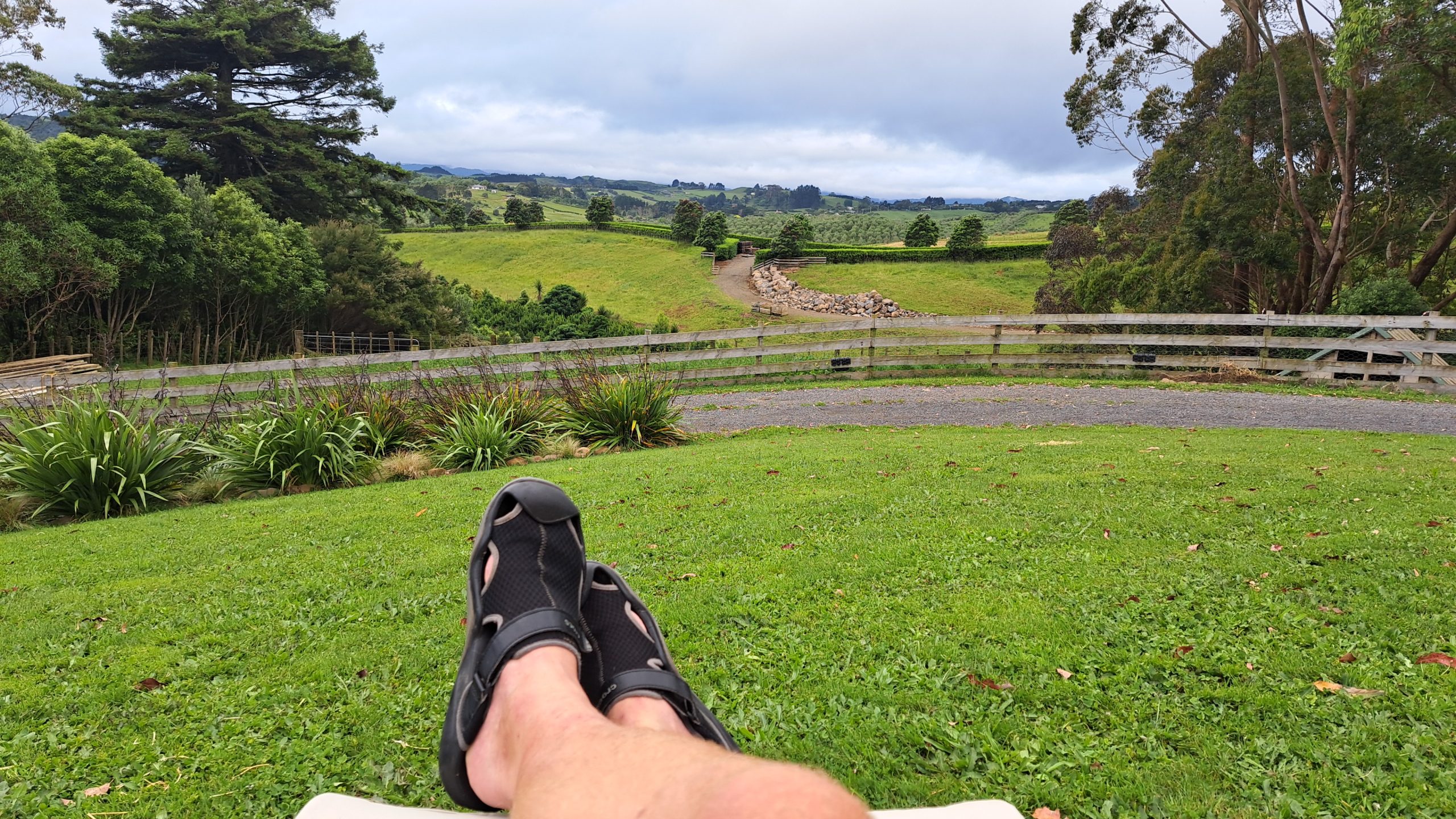 Über viele Straßen kommen wir wieder aufs Land. Das Motto des Tages lautet: Trucks. LKW in allen Größen fahren mit wenig Abstand an uns vorbei und das Wandern macht wenig Spaß. Aber auch das gehört zum Te Araroa. Das Highlight des Tages erwartet uns am Abend: Ein Trailangel stellt uns sein Gästehaus auf seinem Anwesen zur Verfügung. Wir genießen den Whirlpool auf der Terrasse und lassen den Abend mit Aussicht auf die Umgebung ausklingen.