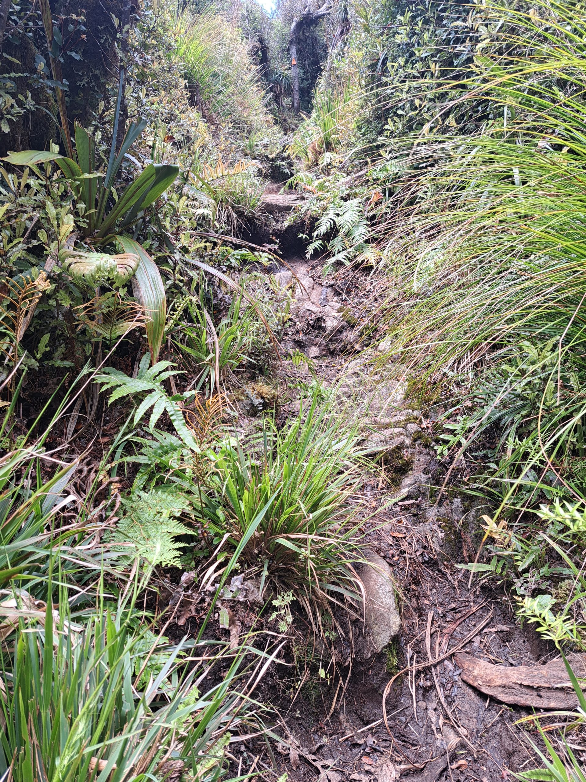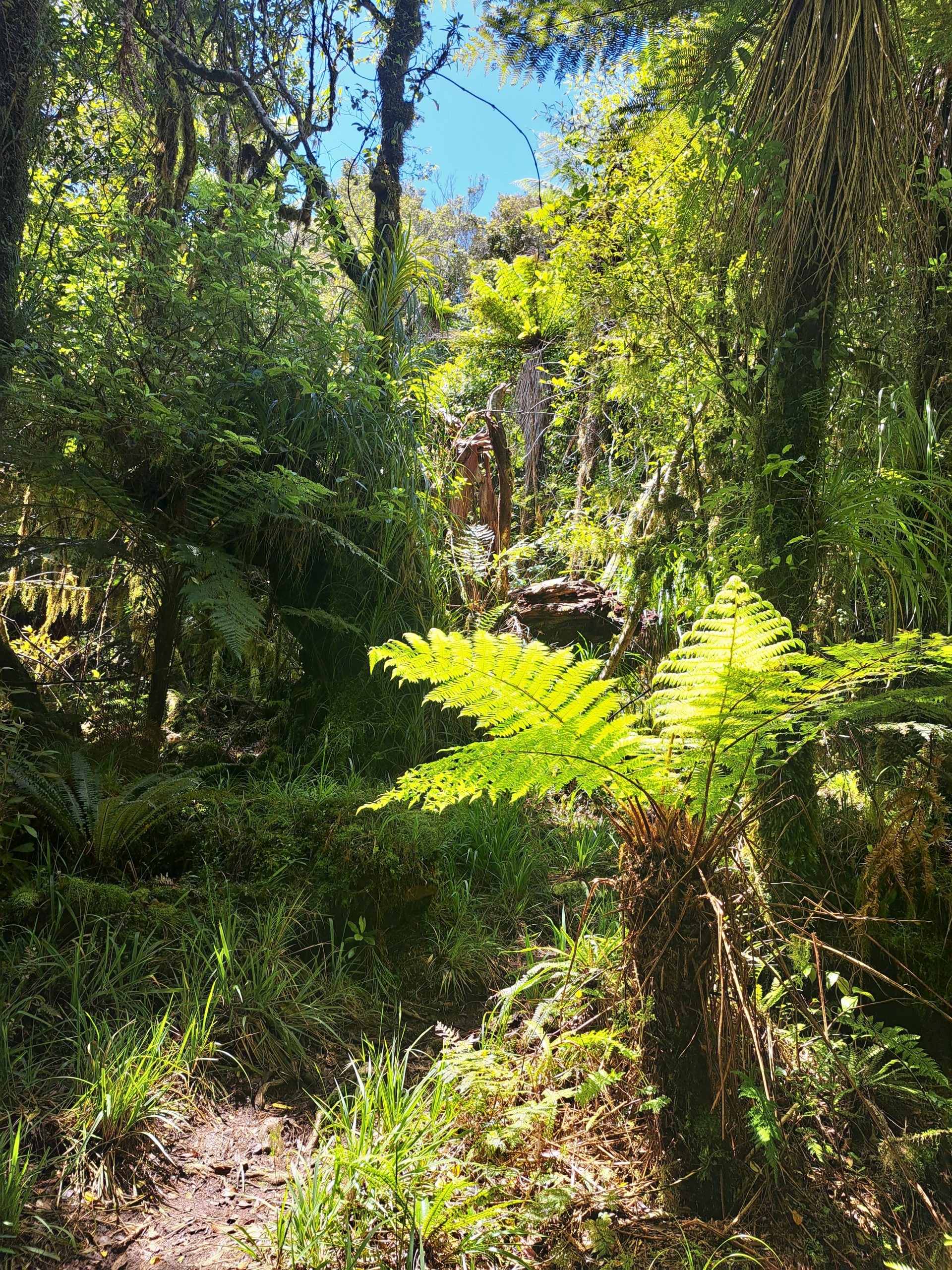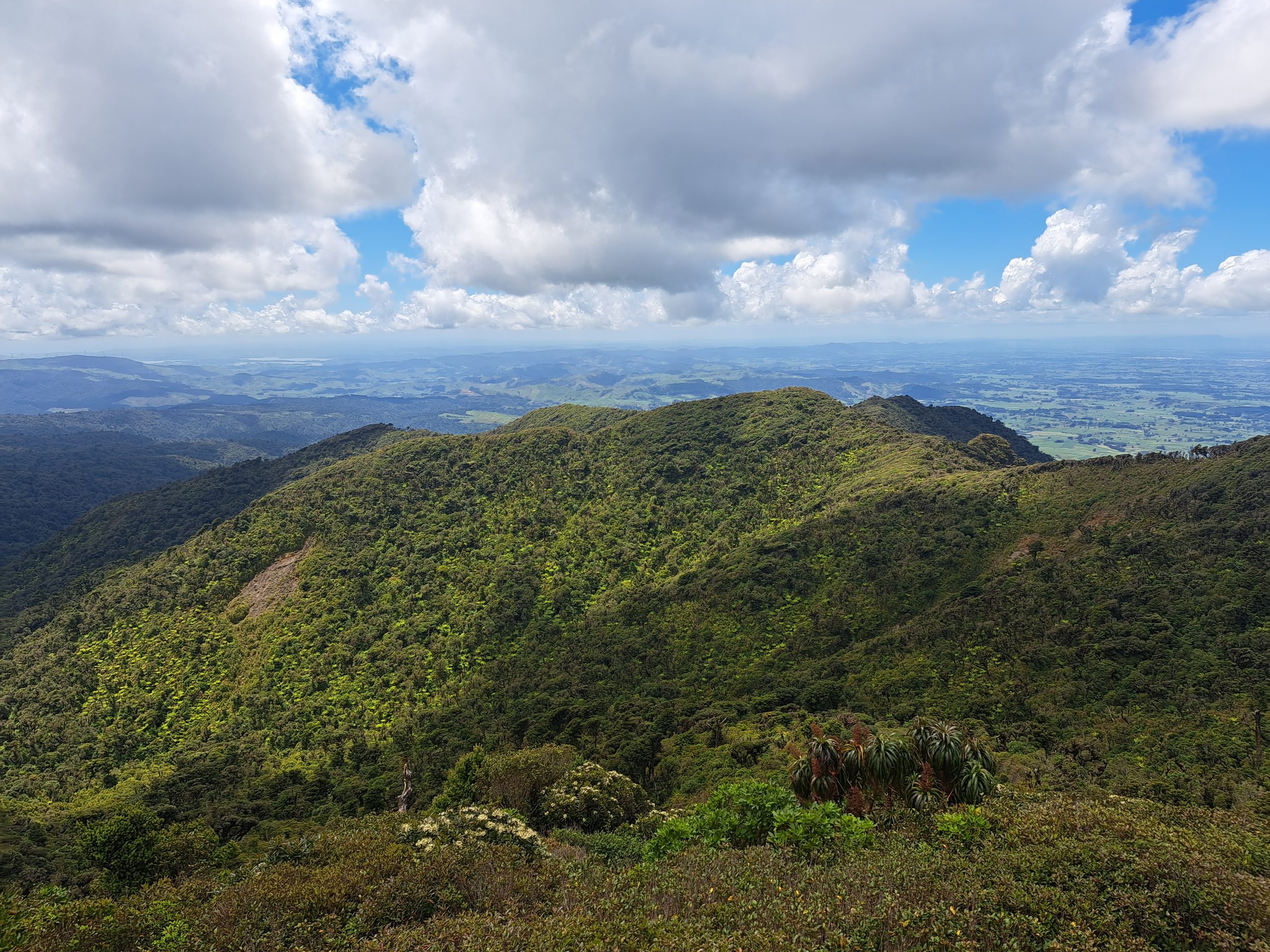 Sonnenaufgang, einen ersten Kaffee direkt am Zelt und danach 5 Stunden allein im Wald. Ein traumhaft schöner Tag mit schönen Ausblicken vom Mount Pirongia, dem mit 959m bisher höchsten Berg auf meiner Reise.
