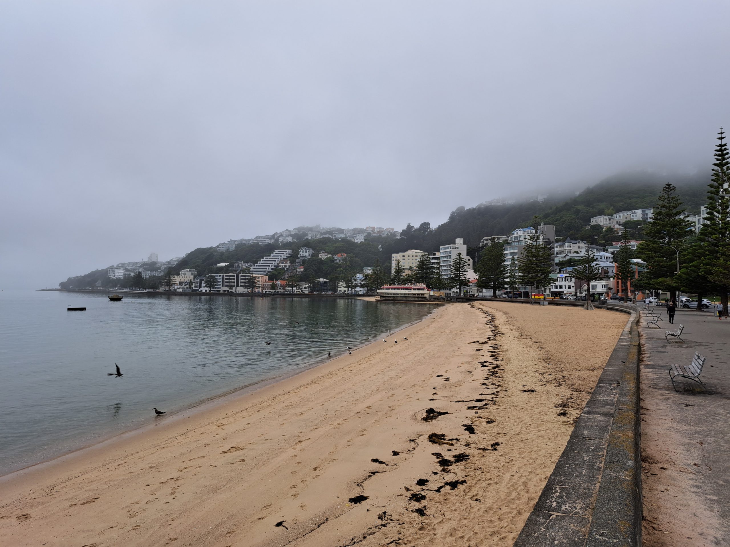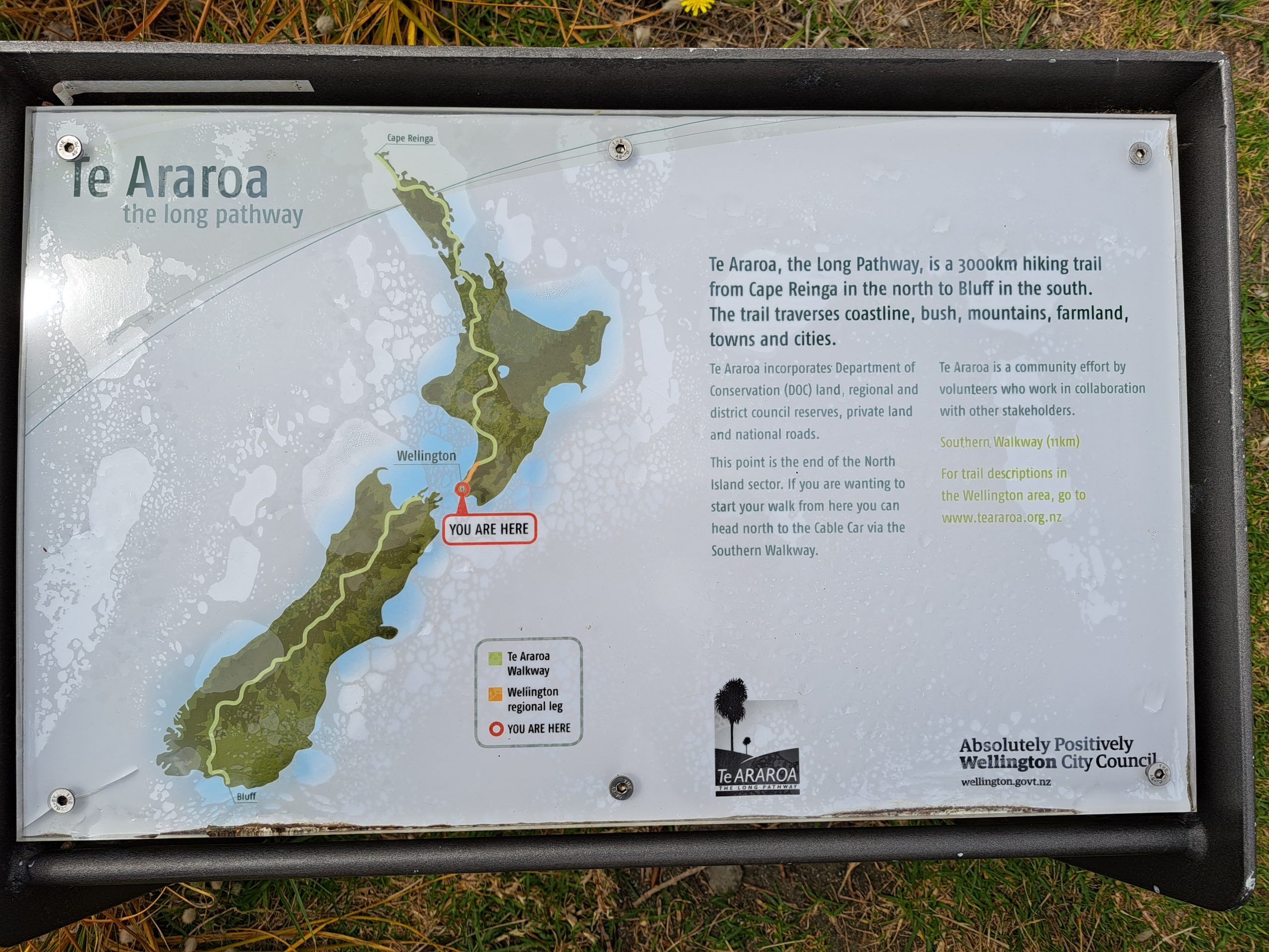 In den letzten Tagen habe ich noch 60 Km durch Wellington zurückgelegt. Dauerregen, Nebel, Sonne, von allem war etwas dabei. Die Planung der nächsten Abschnitte auf der Südinsel hat viel Zeit gekostet. Es gibt nur wenige Möglichkeiten, dort einzukaufen. Also habe ich für die nächsten 30 Tage eingekauft, in Pakete gepackt und an verschiedene Orte entlang der Strecke geschickt.