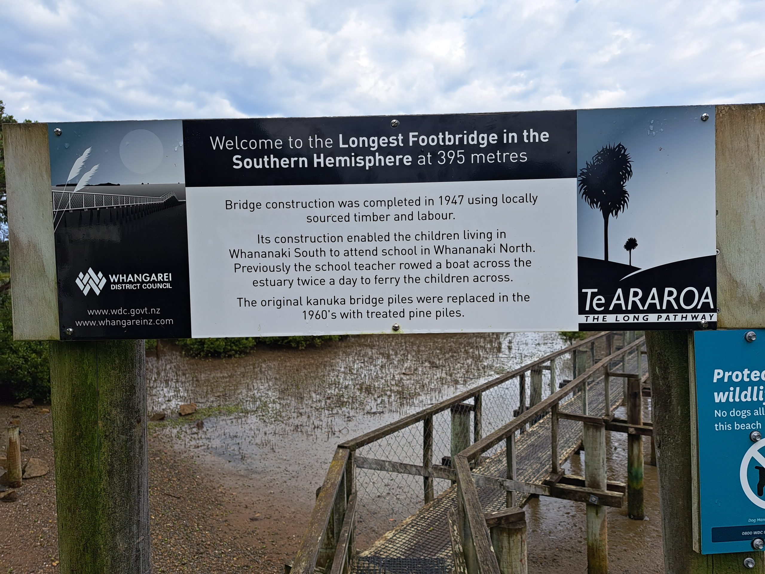 Über die längste Fußgängerbrücke der südlichen Hemisphäre verlasse ich Whananaki. Der weitere Weg entlang der Küste gibt Blicke auf viele kleine Buchten frei. In Ngunguru werden wir mit einem Dingi zum Campingplatz übergesetzt und lassen den Abend am Lagerfeuer ausklingen.