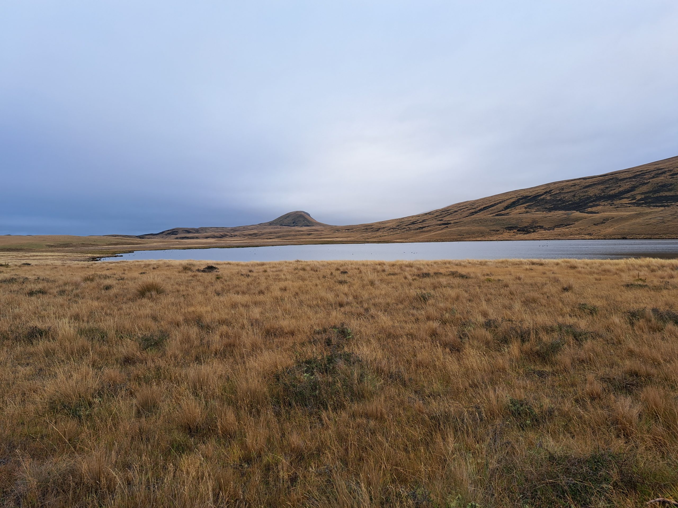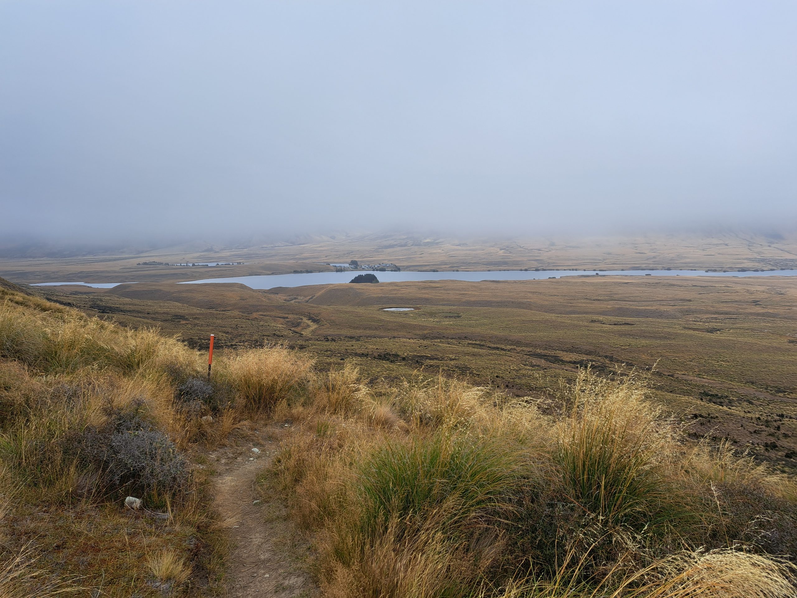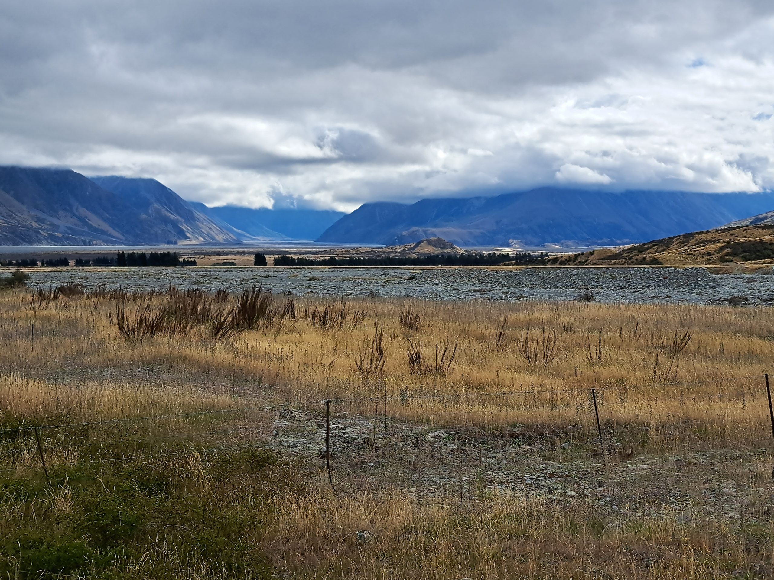 Gräser und wolkenverhangene Berge haben heute das Bild geprägt. Der Regen hat sich noch bis zum Eintreffen des Shuttles zurückgehalten, ist danach aber um so heftiger gefallen. Heftig genug, um morgen einen Ruhetag in Geraldine zu verbringen. Übermorgen geht es dann auf der südlichen Seite des Rangitata Rivers weiter.