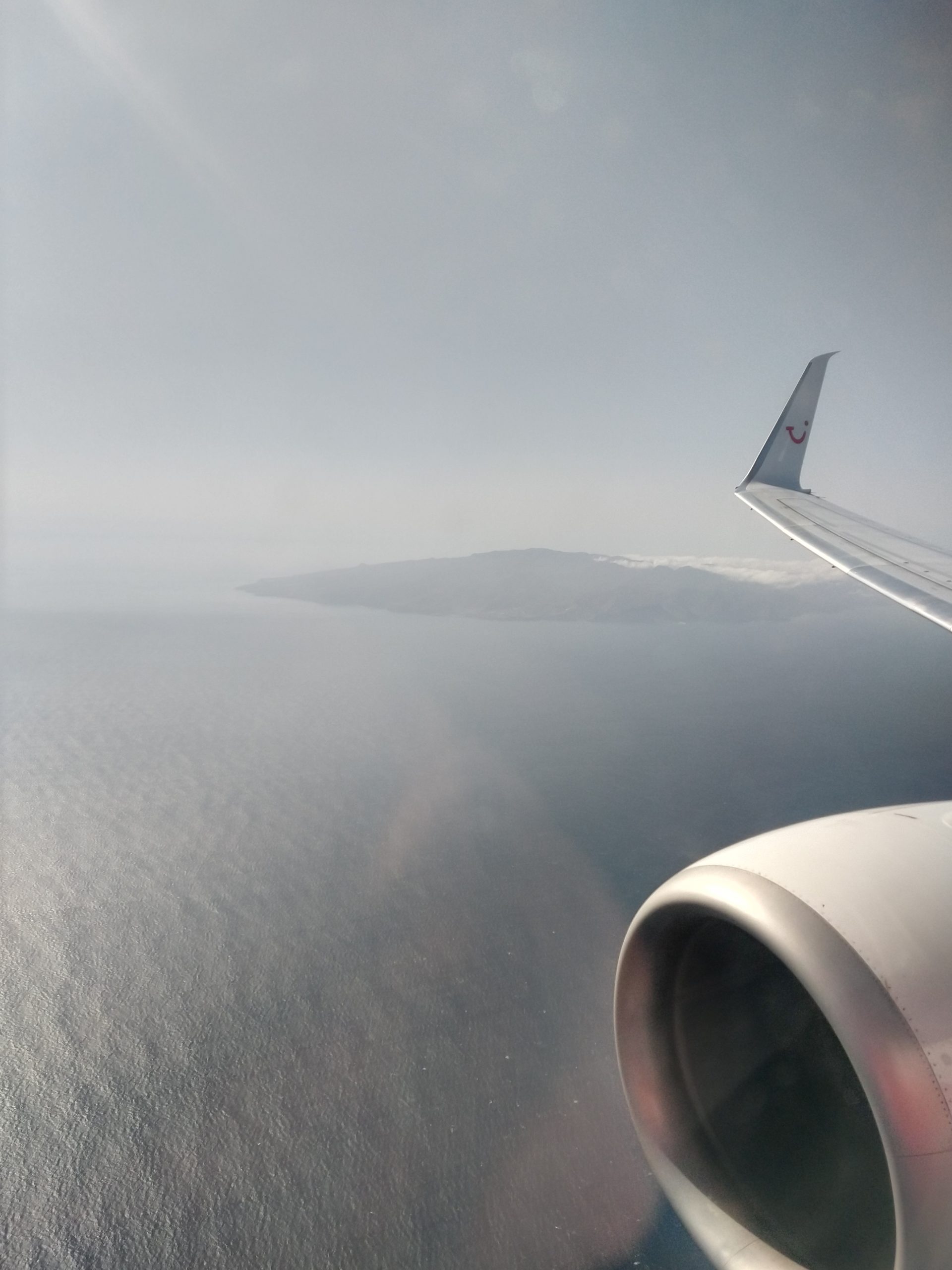 Bei herrlichem Wetter bin ich über die Pyrenäen geflogen bis schließlich die Insel in Sicht kam. Allerdings stand vorher noch eine Überfahrt mit der Fähre ab Teneriffa an. Das Schiff schaukelte, einige blasse Gesichter waren zu sehen, aber dann habe ich mein Ziel „San Sebastian“ erreicht. Morgen wandere ich nach Hermigua, ich freu mich 😀😀