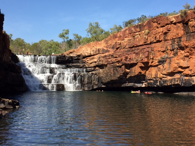 Heute war mein letzter Tag in den Kimberleys, langsam geht mein Urlaub zu Ende und ich muss ja noch nach Perth 😀 Ich habe den Vormittag in der Bell Gorge verbracht. Schöne Badegelegenheit, ein letztes Mal unter einem Wasserfall duschen und ein paar Meter schwimmen. Nach 100 Km Gravelroad war ich nachmittags im Tunnel Creek NP. Hier konnte ich einen Kilometer durch eine unbeleuchtete Höhle wandern. Die Strecke führt durch einige kleine Flussläufe und dort leben in völliger Dunkelheit auch Krokodile (Freshies, harmlos) 😀Das Erlebnis war etwas „spooky“ , aber toll. Danach bin ich die letzten Meter auf unbefestigten Straßen gefahren und übernachte kurz vor Broome.