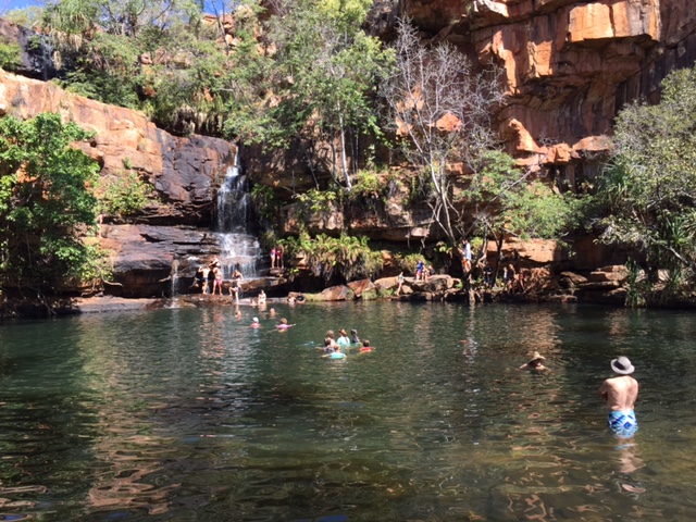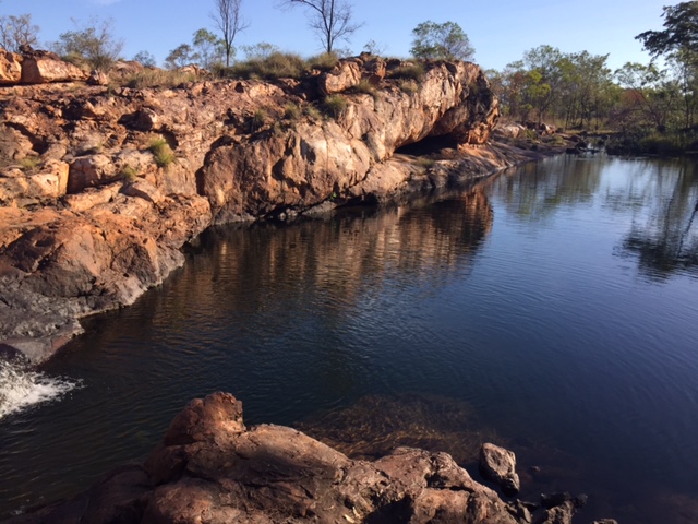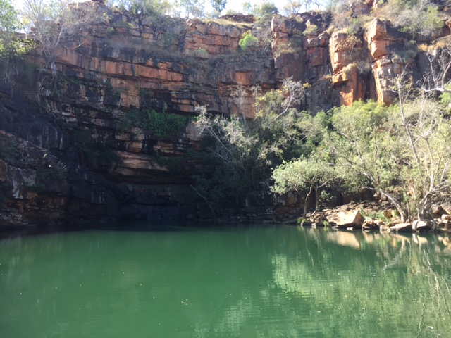 Ich habe mich mit der Mietwagenfirma geeinigt. Ich setzte den Allradantrieb nur noch im Notfall ein, dafür bekomme ich für die letzten Tage eine ordentliche Erstattung. Fairer Deal aus meiner Sicht. In den Tag gestartet bin ich mit einer Wanderung zu den Manning Falls in der gleichnamigen Schlucht (Gorge). Gleich am Anfang musste ich mit einem Dingi über den Fluss übersetzen (OK, ich hätte auch schwimmen können 😀). Nach einer Stunde Fußmarsch hatte ich den Pool an den Wasserfällen mit wenigen anderen Frühaufstehern für mich, traumhaft. Danach wieder zurück zu meinem Auto, 20 KM weiter westlich auf der Gibb kam die nächste Schlucht: Adcock Gorge. Ich kam mir vor, wie im städtischen Schwimmbad. Viel zu viele Menschen. Nach einer Viertelstunde habe ich mich auf den Weg zur nächsten Gorge gemacht: Galvans Gorge. Das war nach meinem Geschmack, ich war allein dort und hatte ein paar schöne Stunden. Als heutiges Ziel habe ich mir Charnley River Station ausgesucht. Die Frau an der Rezeption hat mich gleich zu den „Donkey Pools“ geschickt (muss mir das zu denken geben?). Ein sehr schöner Abschluss des Tages, ich denke die Bilder sprechen für sich.