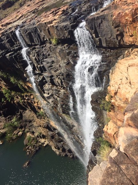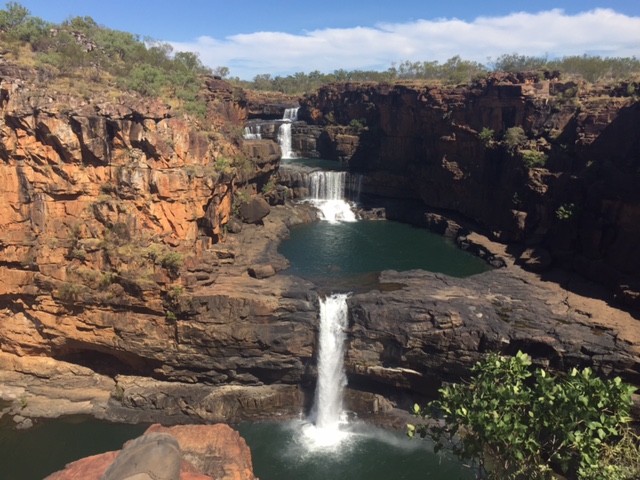 Auf dem Weg zu den Mitchell Falls ändert sich die Vegetation, es stehen mehr und mehr Palmen am Straßenrand. Allerdings lassen sie während der Trockenzeit ein wenig die Blätter hängen 😀. Im Nationalpark angekommen habe ich mich gleich auf den Weg zu den Falls gemacht. Zu Fuß und nicht wie viele Touristen mit dem Helikopter. Das erste Bild zeigt die „Merten Falls“, das zweite die Mitchell Falls. Ich hatte einen perfekten Platz (Danke 😉) und konnte eine Stunde abseits vom Touristenstrom die Falls genießen. Der Abend klang dann am Lagerfeuer mit Frank und Bella, beide vor Jahren von Deutschland nach Australien ausgewandert, aus.