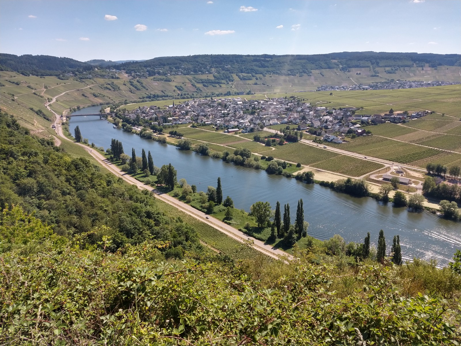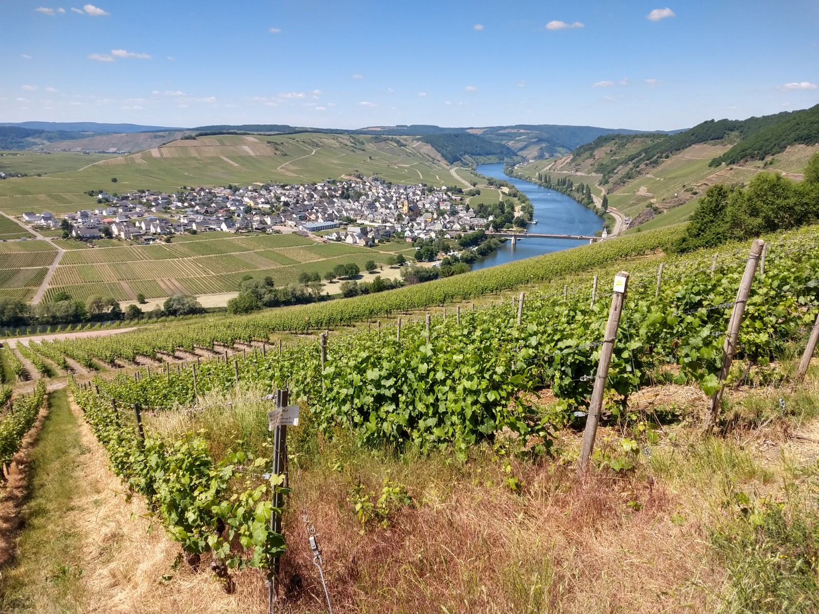 Der Moselsteig hat mich wieder. Bestes Wetter, tolle Aussichten, aber deutlich mehr Betrieb als bei bei meiner letzten Tour. Vielleicht erlebt die Region auch den ersten Ansturm nach der Corona-Enthaltsamkeit, vielleicht ist auch im Frühjahr immer so. Ist ja mein erster Besuch, aber ich bin begeistert und lasse den Tag in der Straußwirtschaft „Böhmer“ in Neumagen-Dhron ausklingen. Die Bilder sind Impressionen von Unterwegs