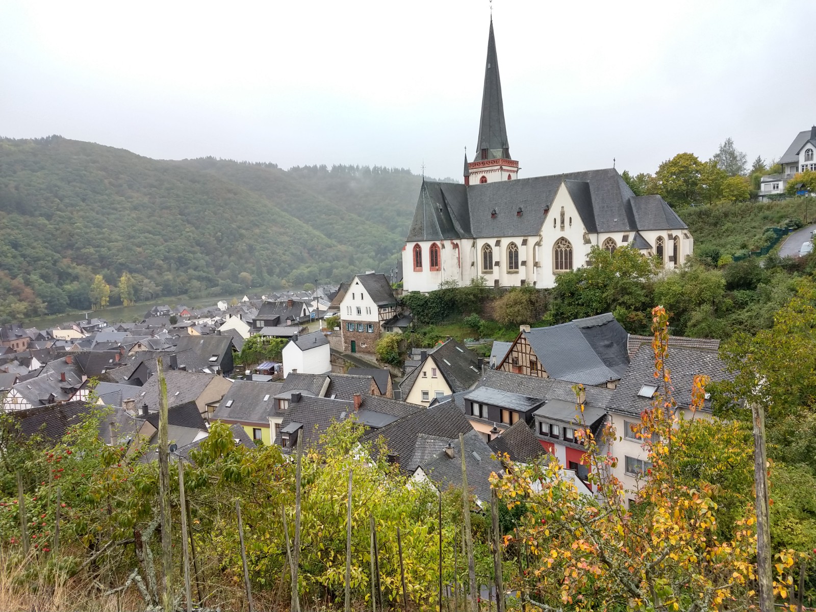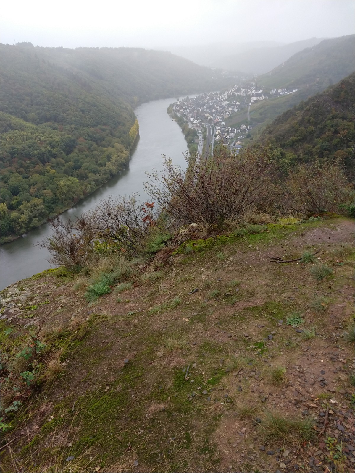 Kurz gefasst: Noch ein Jaan-Jaaus-Tag. Es ging durch kleine Seitentäler mit dichter Vegetation zu beeindruckenden Aussichtspunkten hoch über der Mosel. Nachmittags könnte ich sogar eine Zeit lang in der Sonne sitzen. Fast hatte ich das Gefühl, sie war stärker als sonst. Oder habe ich sie zu lange vermisst? Egal, schön war’s!