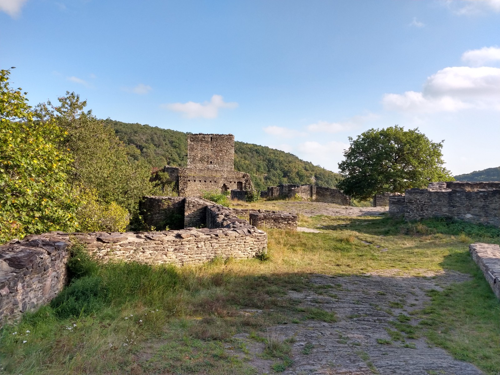 Heute ging’s von Kirn in das erste Trekkingcamp an der Schmidtburg. Die Strecke war sehr abwechslungsreich, führte über Wiesen, durch alte Bergwerksstollen und eigentlich ständig auf und ab. Entsprechend erschöpft bin ich an der Schmidtburg angekommen und zelte im Burgarten. Sehr coole Anlage!
