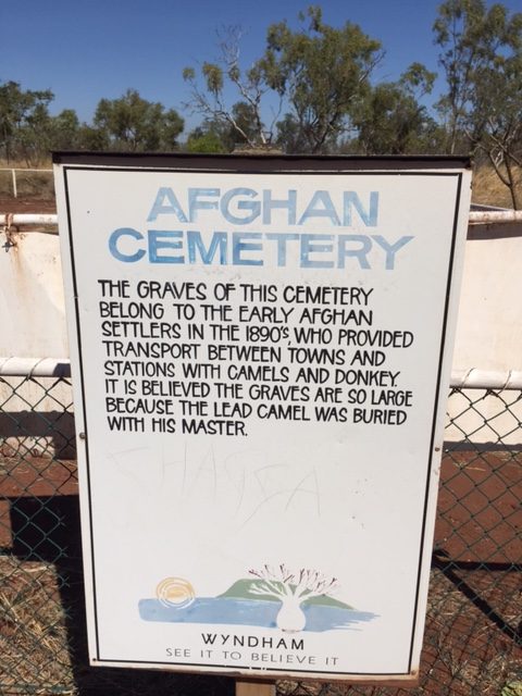 Im Morgengrauen bin ich wach geworden und habe den Sonnenaufgang beobachtet. Das ist hier zur Zeit um 5:30 Uhr, dafür ist es aber um 17:30 Uhr schon stockdunkel. Wer sich diese Zeitzone ausgedacht hat, sollte noch mal darüber nachdenken 😀. Also habe ich mich reisefertig gemacht und bin Richtung Wyndham gefahren. Dort habe ich den „5 Rivers Lookout“ und den Afghanischen Friedhof besucht. Auf dem Friedhof wurden die Kamele mit ihren Eigentümern beerdigt, Sachen gibts… Danach weiter in Richtung Gibb River Road und im Touristenresort „El Questro“ abgestiegen. Hier gönne ich mir heute ein paar Bier und bekomme meine Gedanken dann hoffentlich in den Griff. Im Leben ist alles für etwas gut. Sorry, heute etwas sentimental, wird aber wieder besser, versprochen 😀. Ich bin jetzt 50 Km auf der Gibb River Road gefahren. Ab Km 68 gibt es keinen Handyempfang mehr. Ihr habt also mindestens eine Woche Ruhe vor mir 😀 Also kein Grund zur Beunruhigung, wenn hier erstmal Funkstille ist.